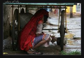 The picture of the lady sitting under the cart?